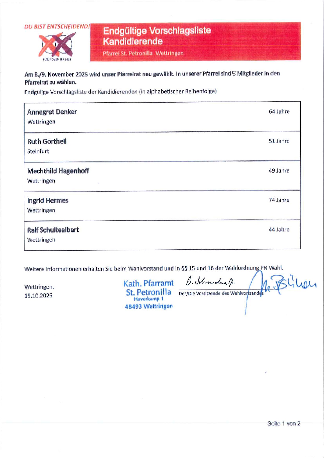 FINALE Listen der Kandidierenden für die KV- und Pfarreiratswahl